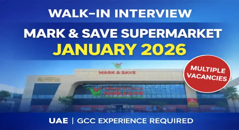 Mark & Save Supermarket has announced Walk-In Interviews for January 2026 for experienced supermarket and hypermarket professionals. This …